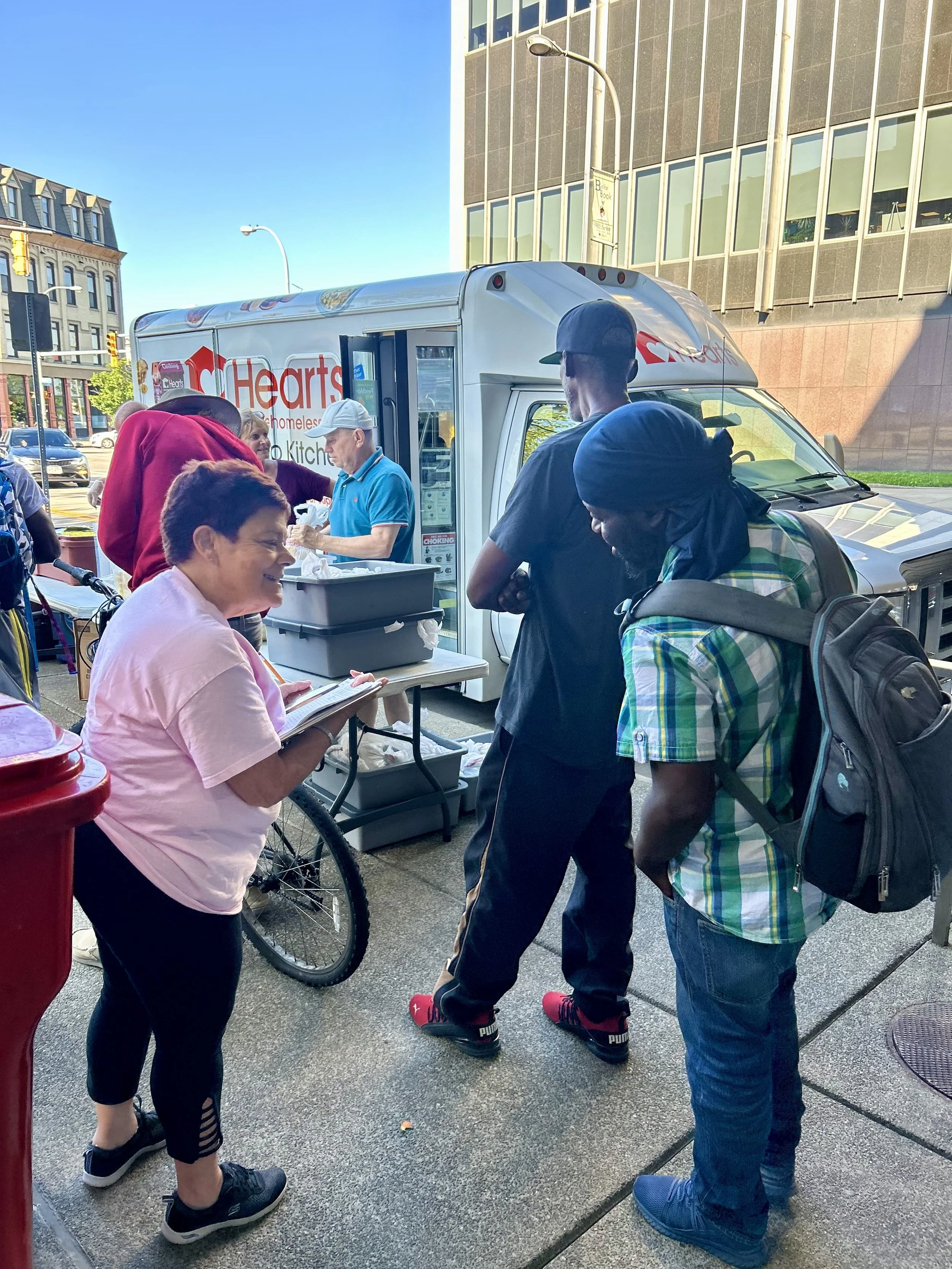 As Hearts’ longest-running outreach, the Hearts Mobile Soup Kitchen brings both nourishment and the love of God to those in need—five nights a week, every week of the year. Outside the downtown library, our dedicated volunteer teams serve hot meals, sandwiches, drinks, and desserts to individuals facing hunger and hardship. Many of these volunteers are spiritually motivated, offering not only food and clothing but also companionship and guidance on local support services. In 2024, the Hearts Mobile Soup Kitchen served more than 21,000 meals to poor and homeless members of our community—ensuring that no one has to go without a warm meal, a kind word, or the dignity they deserve.